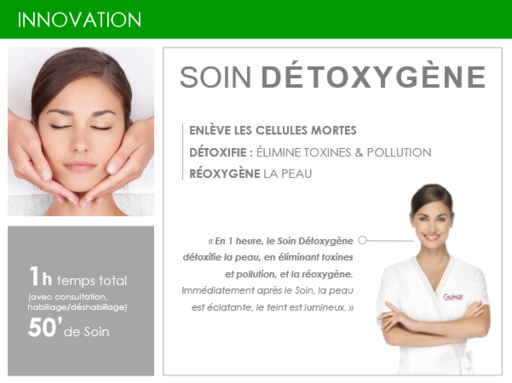 En 1 heure, le Soin Détoxygène libère la peau de ces impuretés et lui redonne de l’éclat. La peau respire à nouveau.